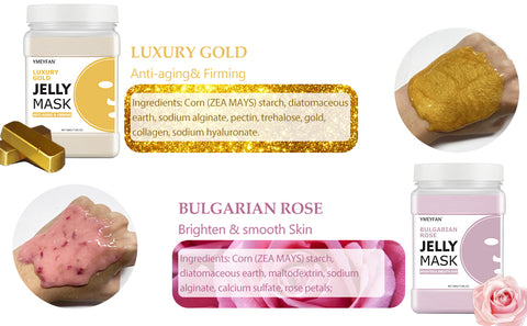 - 🥇[GOLD JELLY MASK POWDER] - YMEYFAN's Crystal Gold Hydrogel Mask Powder has added gold powder. Gold is known to have anti-aging properties, as it can help to stimulate collagen production and improve skin elasticity. We care about your skin. This hydrogel mask powder is made up of skin-friendly natural ingredients, No Preservatives, Paraben Free, No Mineral Oil, Cruelty-Free.